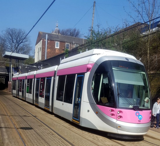 As has been reported on this very website over the past few months 18 is the first of the Urbos3 trams to be so fitted with state of the art lithium batteries (housed on the tram roof) and it will be followed by the rest of the fleet. As for 18 it left Wednesbury Depot on 18th January 2017 for the fitting of the batteries in Spain (all other trams will see theirs added at the depot) before returning from its travels on 22nd September 2017. After overnight testing and then daylight testing, 18’s first passenger trip was a special run for councillors on 1st March 2018 and after further tests and driver training it was finally cleared for full passenger service which came on Friday 20th April 2018.