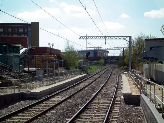 Looking from Meadowhall South stop towards Meadowhall and Tinsley Junction where the Tram-Train service will diverge on the right away from the mainline.