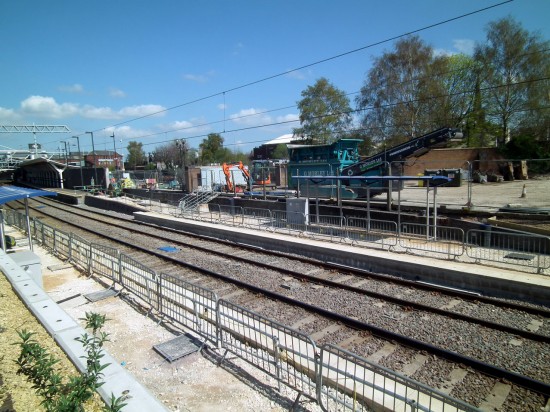 As work continues on the overhead we look towards the mainline showing the junction. (Photographs x3 by Glyn Hill)