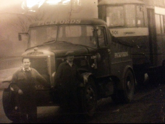 This may not be the clearest photo of the tram but clearly shows 501 posing for the camera with the Pickfords lorry at the front. Also posing are the crew transporting the tram which includes Jack Baines from Leeds.
