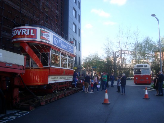 The hard working volunteers of the Heaton Park Tramway were on hand to assist with the loading of 5 in the morning with the tram heading through Middleton Road Gates around 0600 for the relatively short trip to Stockport where it was one of the star exhibits of the day. Many interested visitors took a look at recent progress on the overhaul of the tram including the Mayoress of Stockport. The tram has been out of service since 2013 since when it has been undergoing extensive work in the Middleton Road workshops of the Heaton Park Tramway. Although this work is now approaching the end of the road 5 isn’t quite ready to return to service just yet but it is hoped that it will carry passengers at the Park again by the end of this year.