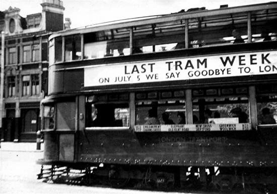 In this photo we see a tram running on route 36 which ran between Abbey Wood and Victoria Embankment via Blackfriars Bridge. Originally due to be part of “stage 9” of Operation Tramaway this was one the routes pulled forward to stage 8 as London Transport were determined to be rid of trams as soon as possible. Trams for route 36 were allocated from two depots: Abbey Wood and New Cross.
