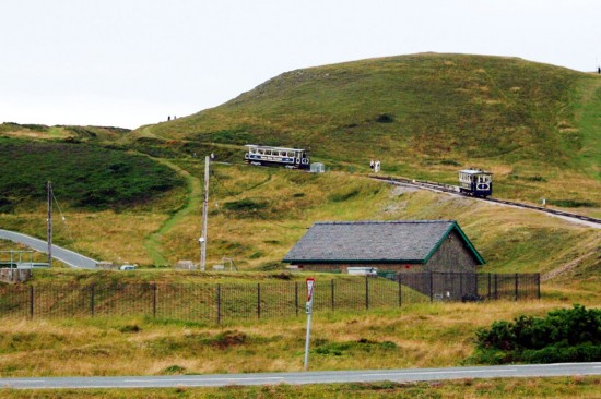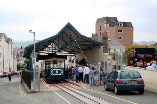 First things first, while it is located along the side of a road and in a road it is a ‘tramway’ in that sense, but the Great Orme Tramway is actually two funicular railways that meet end on. The trolley poles still sported by the car were actually part of a telephone system linking the car driver with the operator at the hoist house and did not carry traction current, although remaining in place today they are no longer used for that purpose.