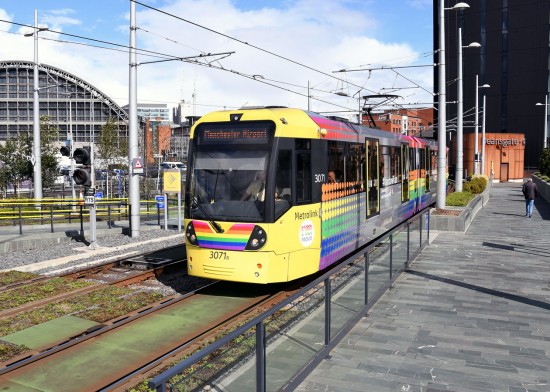 We featured the first of the two Rainbow Trams adorned for Manchester’s Pride event over the August Bank Holiday previously but in order to complete the picture we now take a look at the other specially liveried trams – 3071. Externally looking identical to 3028, 3071 also features the attractive Rainbow spots on the bodyside along with rainbow stripes on each end.