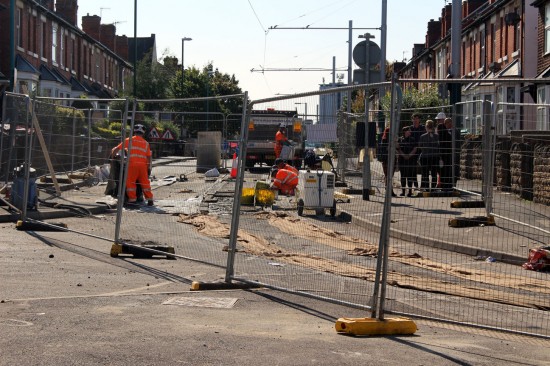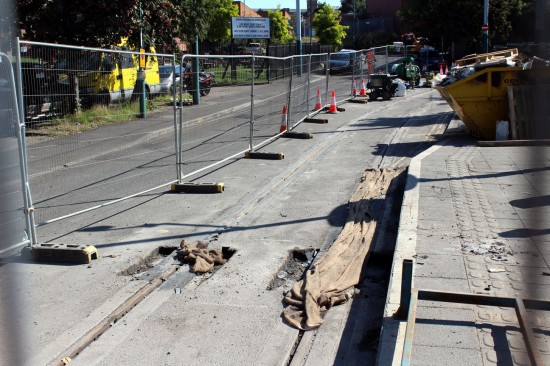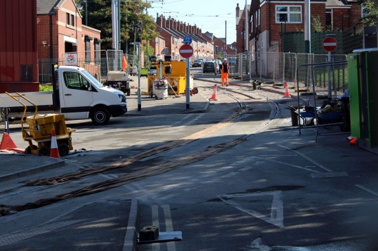 Having previously looked at the rail replacement worksite just beyond the stop at The Forest we now take a look at the area around Shipstone Street which was also a hive of activity during the closure. All work was completed on schedule allowing a full service to resume as planned on Monday 3rd September with these views showing the almost complete worksite on Friday 31st August.