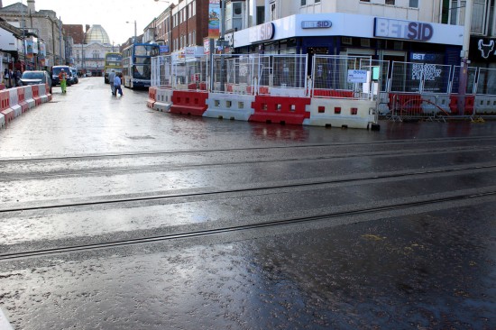With spacers in place ahead of the final surface being applied this is the scene just along the first section of Talbot Road from the Prom.