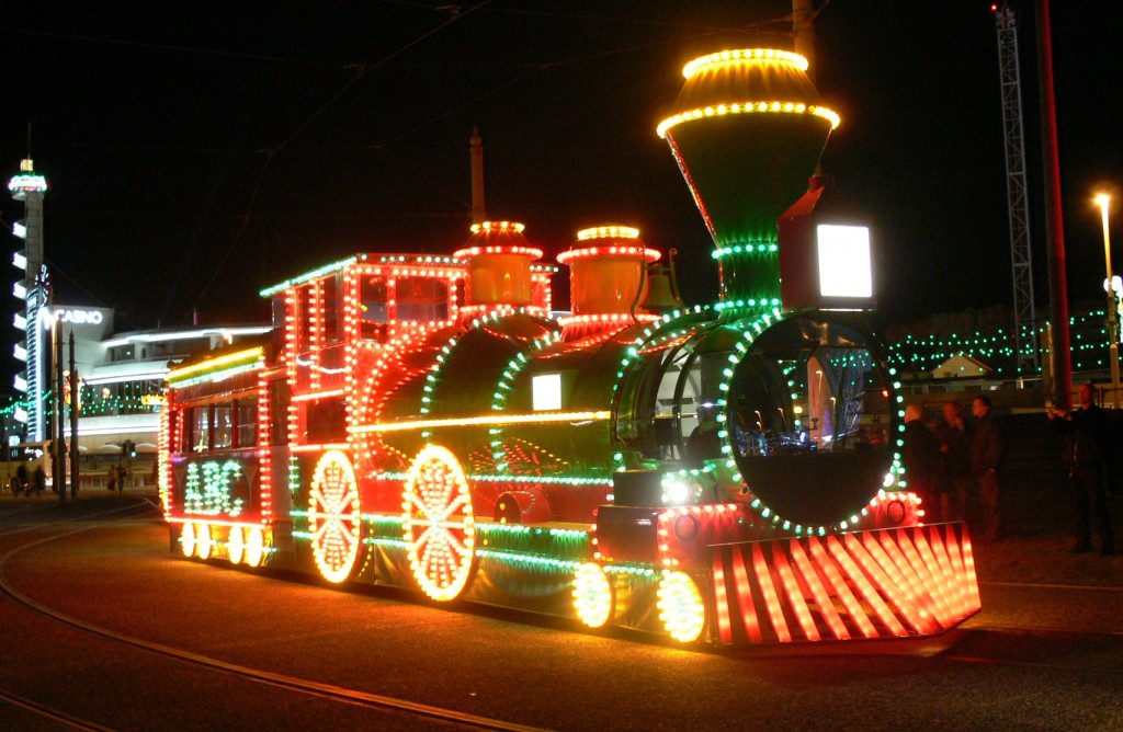 The Western Train is seen loading up at Pleasure Beach on a typical illuminations evening in September 2012. Soon, winter visitors and Blackpool residents will be able to bask in the warm glow of the Train when it appears on Santa Specials. (Photo by Andrew Waddington)