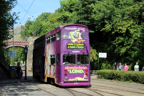 Another Blackpool tram in today’s look at Crich’s Simply Trams event – and a tram, or to more precise its livery, that continues to divide opinion amongst enthusiasts. It is of course Blackpool Jubilee 762 which carries an all over advert for Nickelodeon Land at the Pleasure Beach.