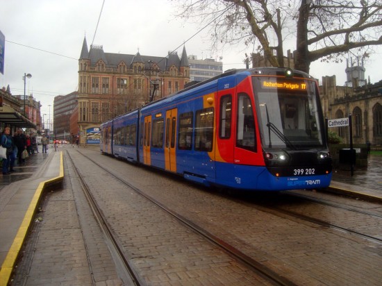 They say a week is a long time in politics, well it seems that a day is a long time on tramways as no sooner had we reported about the creation of an all new Citylink tram-train in Sheffield than it enters service on Stagecoach Supertram! The new 399 202 has got the tram-train wheel profiles and was used for the first time in service on the Tram-Train service between Cathedral and Rotherham Parkgate on Tuesday 18th December.