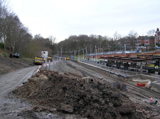 When trams start to run on the Trafford Park extension in 2020 they will be operating a service through Manchester City Centre to Crumpsall giving additional capacity on the Bury line. To this end a third platform and track will be provided at Crumpsall to accommodate the terminating trams and this is where work will be concentrated over the next year before services began. The following photos show the current scene on 18th January 2019 with images courtesy of Keith Chadbourne.