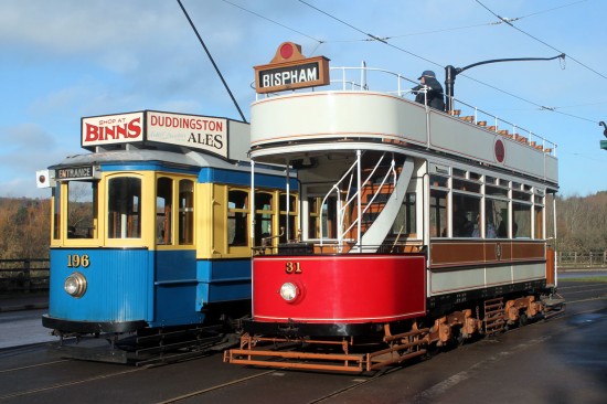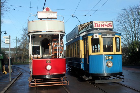 We’ve already had the exciting news from Beamish this week that Manchester 765 is to visit from Heaton Park for most of the first half of the year but before that tram arrives it is up to the resident fleet to cater for early season visitors. On a sunny 22nd January a two tram service was in operation with Blackpool 31 and Oporto 196 operating either way around the tramway circuit. Work to replace the sleepers between Pockerley and the Town is still ongoing but is not a daily task and when it is not taking place a normal service runs.