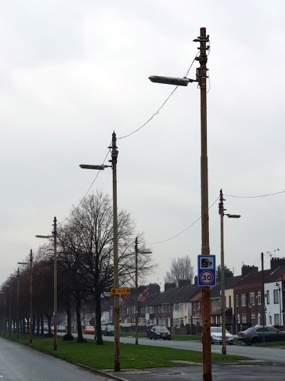 Earlier this year we reported on the last remaining overhead support poles in Liverpool which are set to be removed during 2019. Now in sole use for street lighting an upgrade of this equipment will necessitate the removal of these remarkable survivors – still in place over 60 years since the last trams ran in the city. Dave Jones captured the below images for posterity.