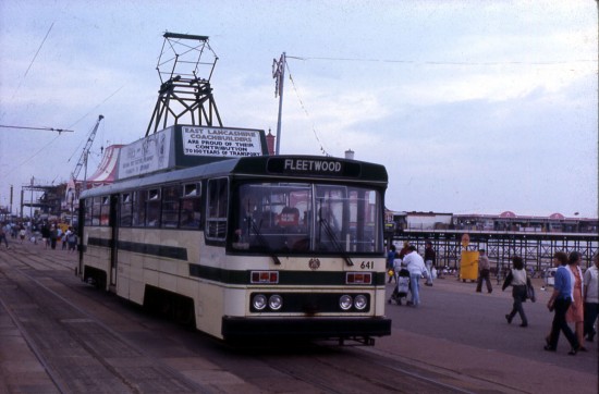 Back to this photo – which would have either been taken in either 1984 or 1986 – 641 is heading through to Fleetwood having just past South Pier. Just beyond South Pier can be seen the framework for the construction of a new inside water park, to be known as the Sandcastle this attraction has now been a distinctive part of Blackpool Prom for over 30 years.