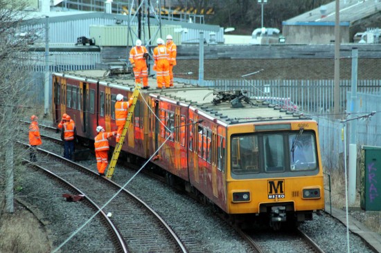 Concluding our series of images from days gone by of the Tyne and Wear Metro we feature an image today showing that not everything goes according to plan with a double unit in trouble.