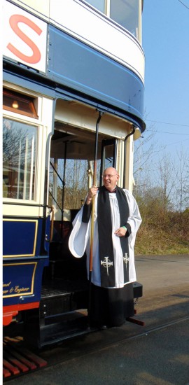The Parish of Crich and South Wingfield – which covers the area around the Crich Tramway Village – has a new vicar and to celebrate the fact he went for a tram ride and had his reception at the museum with Leeds 345 doing the honours.