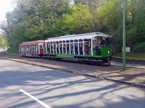 Trailer 59 – which returned to service at last year’s 125th Anniversary celebrations – was in service on Monday 22nd April with Tunnel Car 7 providing the power. In this view we see the pair at Derby Castle awaiting departure.