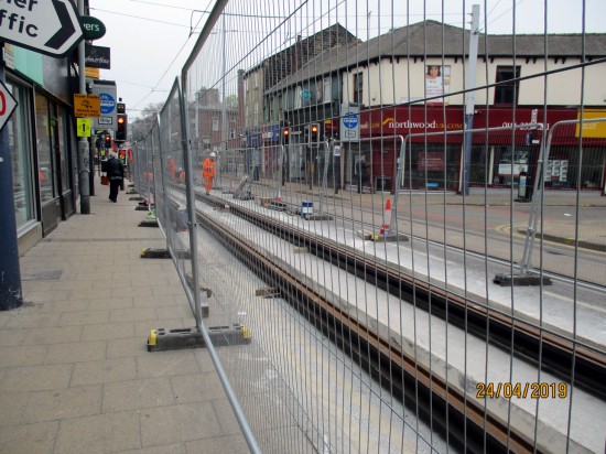 Along Middlewood Road and the inbound line is blocked off allowing work on the track relay to commence.
