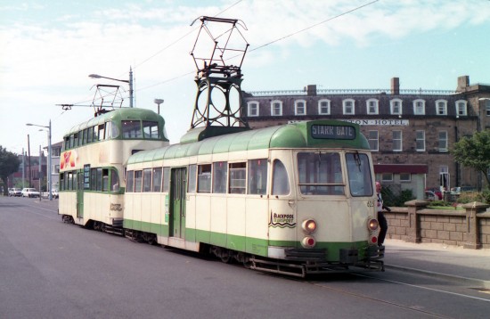 Seen in this picture is Brush Car 625 which at the time was in the standard Green and Cream livery complete with Blackpool Transport wave and towers logo plus 1990s safety posters alongside the centre entrance. 625 had entered service at the end of July 1937 and would remain as part of the operational fleet in Blackpool until the end of the 2004 season when it became one of the trams to be withdrawn as part of the infamous mothballing. It survives today and is in private ownership being stored at Blackpool Transport’s Rigby Road Depot once more.