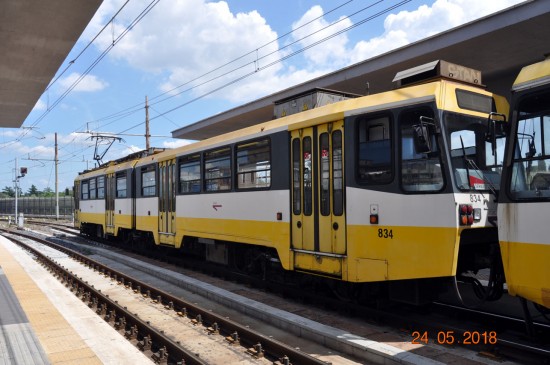 We see no. 834 at Centocelle in this photo which seems to be coupled to another articulated unit. Centocelle is the terminus of the Giardinetti Railway today but previously the line used to continue further afield through to Giardinetti itself. The vehicle features the more modern yellow, white and black livery style. This photo was taken on 24th May 2018.