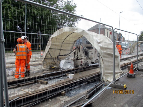 Work on Area Two of this year’s rail replacement project on Stagecoach Supertram is now well underway with the current worksite now being on the outbound track from Bamforth Street stop to Burnaby Street. This is a longer section that most of the other sites so far this year and it did slightly overlap with work on the other track although access for road traffic into the city was maintained throughout. Stuart Cooke with the photography for us.