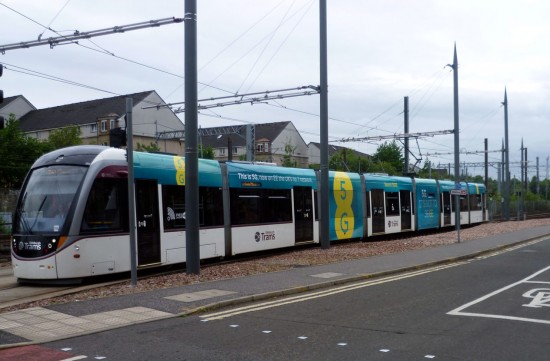 It is now a case of seeing triple in Edinburgh as 269 has become third of the CAF constructed trams to have received an identical advert for EE’s 5G network! The tram follows on from 267 and 275 which have also received the same advert in recent weeks. The application of this advert on 269 also brings an end to another C R Smith advert with its vinyls “from Inverness to Edinburgh” removed in order for this new contract to be unveiled.