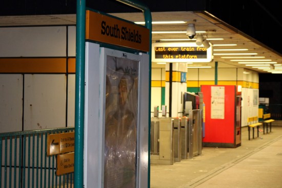 As we reported a few days ago, the end of service on Sunday 7th July saw the original station at South Shields on the Tyne and Wear Metro close to trains as preparations continue for the opening of an all new transport interchange including Metro platforms and bus station. With trains set to terminate at Chichester for the next four weeks the new station will open on Sunday 4th August but for now South Shields will be without an operating Metro station – the first station on the network to close permanently with this station opening in 1984 when the system was extended to South Shields. Trevor Hall – who had also been on the first train back in 1984! – travelled on the very last train and shares the following photos with us.