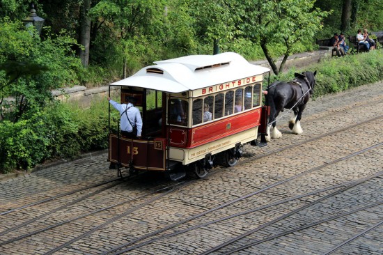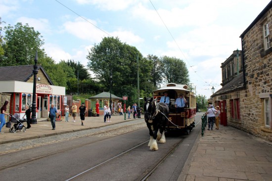 Mix a warm and sunny day with Joseph the horse and Sheffield 15 in operation at Crich and what do you have? A healthy number of visitors to the Crich Tramway Village that’s what! Monday 15th July saw the latest Horse Tram Day at Crich with Joseph hauling 15 between Stephenson Place and the Depot Crossover for four hours either side of lunch alongside a standard three electric tram service, which thanks to the good mid-July weather saw open toppers Blackpool 236 and London County Council 106 run with Blackpool 762 also in action.