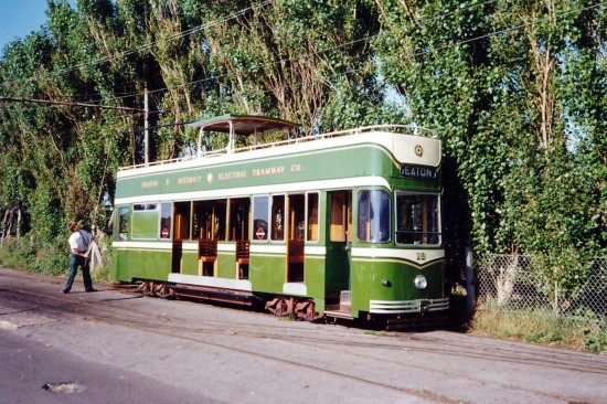 Taken on 11th July 1990 this photo shows 12 in its first double deck condition which it had received 10 years earlier in 1980. Having been originally built in 1966 as a single decker this double deck design was the highest capacity tram in the fleet and certainly had a passing resemblance to a Blackpool Balloon open topper especially with the green and cream livery applied. Featuring a crossbench lower deck and canopy on the top deck it proved to be a popular tram but in 1999 it was decided to rebuild it once more into a Feltham type open topper – another popular design for the tram and a style which has been its longest yet.