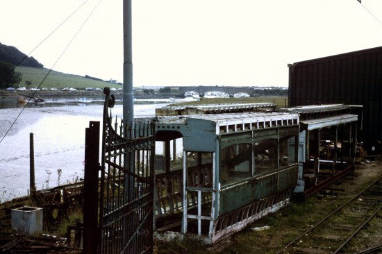 This photo was again taken in 1980 when as well as no. 14 – as it would become – being in an advanced state of restoration on the other side there were two additional tram bodies waiting for their chance to become trams again – even if it was at a different gauge to that they were originally built for. One of these bodies may be Bournemouth 106 which would become no. 16 in the Seaton fleet but the other one is unidentified and would have been too early for the third of the trio of first generation trams converted for use at Seaton – Exeter Corporation Tramways no. 19.
