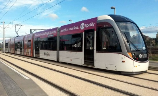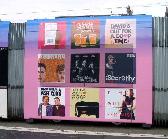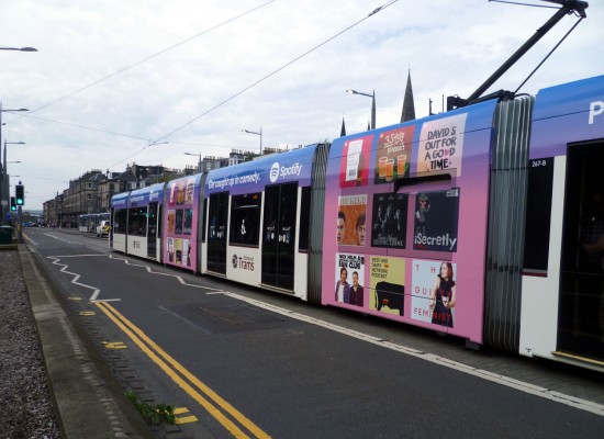 The ever changing scene of adverts being carried on trams in Edinburgh certainly keeps us in news with the latest new advertiser on the tramway being Spotify with both 262 and 267 being seen in identical designs, with different colours held on each side.