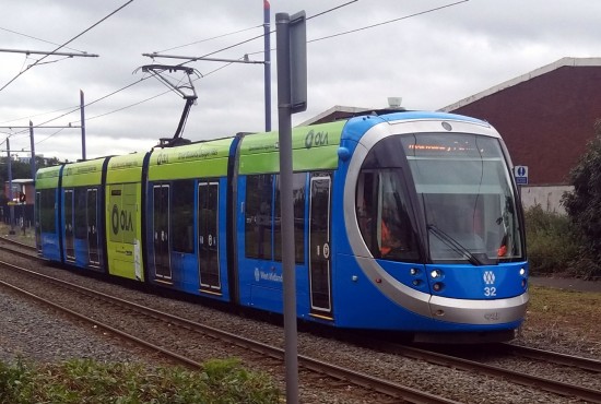 Blue and green may not go together and now there are two examples of this on the West Midlands Metro with Urbos3 32 – the latest to go blue – now carrying ads for OLA, following on from 27 as seen earlier in the week.