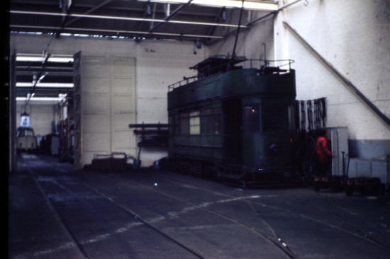 Nowadays we know this tram far better as Marton 31 but in the 1970s the tram was very much part of the works fleet in a drab works green livery. 754 – or 4 as it was originally numbered when first part of the works fleet – was converted into an overhead line car in 1934 following its withdrawal as a passenger car. It was renumbered to 754 in 1972 which dates this photo to post-1972 when it was captured stabled in the depot outside the Electrical Compound. Also visible in this image at the back of the Electrical Compound is an unidentified Boat Car – almost in the exact same position as 230 can be seen today!