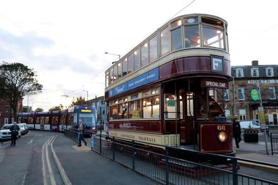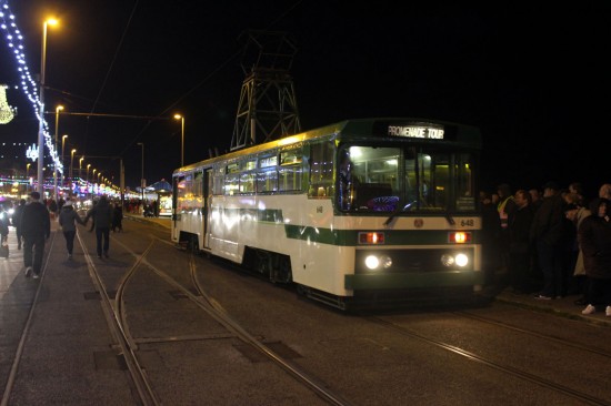 With the remaining tour participants on board 014 made its way back to Blackpool and then at Manchester Square it was time for another change of vehicle! The crew for the tour had also taken 014 back and headed off to depot to get the next tram, which was to be Centenary 648 (practically as far away from Bolton 66 – or Standard 143 for that matter – as you could get!). Picking up passengers just north of the platform at Manchester Square, 648 then used the Foxhall crossover before heading down to Starr Gate and then through the illuminations to Bispham. After reversing there it was back to North Pier and then into depot.