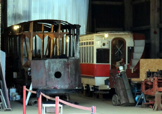 Of note as well is that deep inside the tram depot both Newcastle & Gosforth 49 – the horse tram made up of bits of that tram and Leamington & Warwick 8 – and Gateshead 52 have had lighting applied. Work on the horse car has been ongoing for a number of years by the Friends of Beamish as and when time allows but quite why the derelict 52 also has lighting applied remains a mystery!