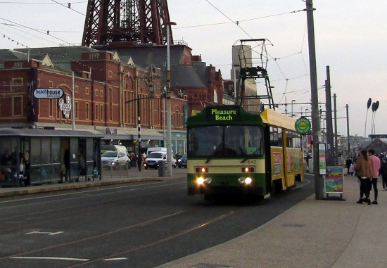 Into Blackpool and the afternoon heritage service with Centenary 642 seen here on the approach to Pleasure Beach. As we recently reported this tram returned to the rails earlier in the month having been missing since January.