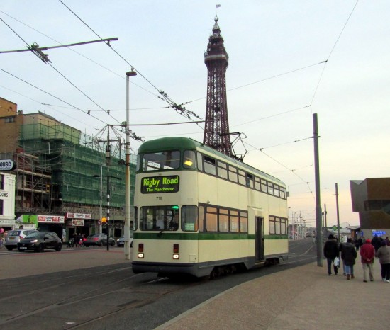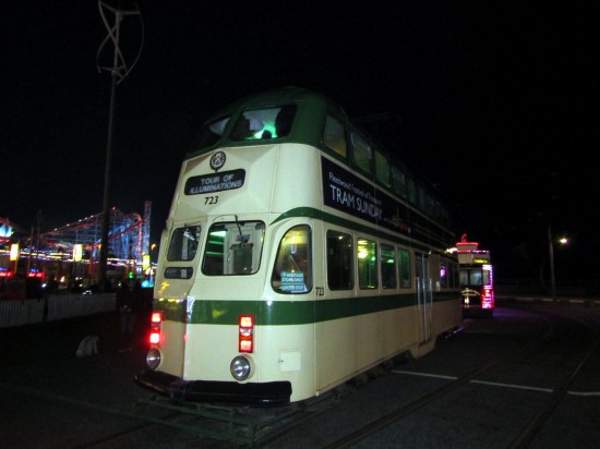 Wednesday 30th October was just another illumination day in Blackpool with a two tram afternoon heritage service along the Prom followed by evening illumination tours. With it still being October Half Term in various areas of the UK it was a busy day, especially during the evening, which necessitated five trams in use on illumination tours and even with those there were fairly lengthy waits for tours. In this pictorial, we see photos from Peter Narramore of the afternoon service in the hands of recently returned Centenary 642 and Balloon 718 before we take a look at a Balloon on evening tour duty and throw in a Flexity for good measure as well!