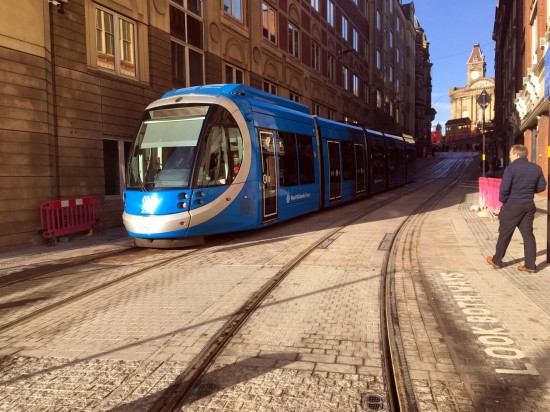 The sight of a new section of tramway without overhead wires did seem odd at first but it will enable the trams to fit into the scene without being too obtrusive