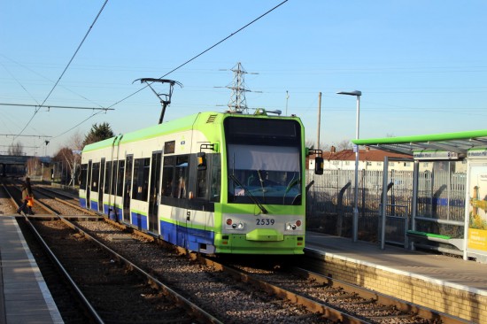 In 2019 and 2539 is just another of the fleet running in the standard fleet livery of London Tramlink – Green, White and Blue. It has also lost the roller blinds and now features electronic destination displays although as it so often the case these aren’t viewable in this image. The tram is just arriving at Waddon Marsh on 14th February 2019.