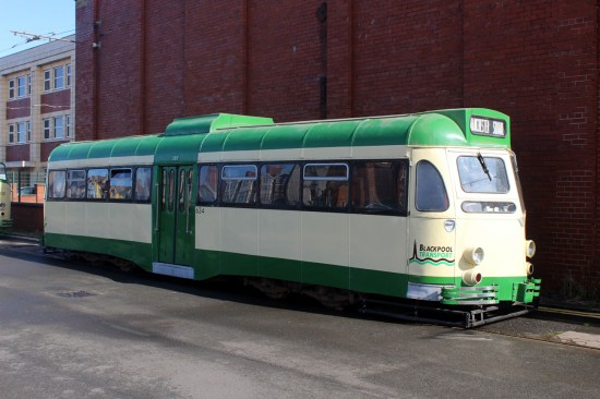 634 was privately preserved and departed Blackpool for a new life in Rushden where work on restoring the tram was undertaken which included a repaint into green and cream in 2010, losing its 2004 advert in the process. Since then the tram had become part of the heritage fleet in Blackpool once more but is not yet operational. It is part of the plan for it to head through the workshops for electrical work in the future but for now remains stored although was displayed on Blundell Street during this year’s September Spectacular event as seen below.