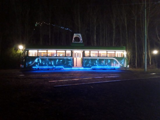 Those attending Lightopia are able to head down to the tramway and take a tram ride in the dark between Lakeside and Middleton Road – with normal tram fares applying. All three operational trams at the tramway have been in action: Hull 96, Blackpool 623 and Manchester 765 with the latter two’s higher capacity seeing their use more often. To add to the light theme 623 has received its own illuminations on its trolley pole and tower. A two car service is running each Saturday and Sunday between 1700 and 2100 with one tram in action each Friday until 29th December.