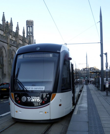 There was disruption on Edinburgh Trams for around four hours on Wednesday 11th December after high winds caused a pipe to become loose on a building in South Saint Andrew Street. The pipe was precariously close to the overhead wires so the decision was taken to suspend all tram services between West End and York Place whilst it was made safe. In the event this revised service ran for around four hours.