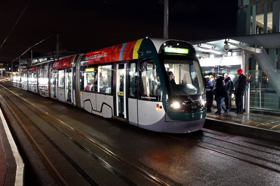 206 was one of four of the Bombardier built trams to be in advertising liveries (209, 210 and 211 the others) and has become the first to lose its wrap in favour of fleet livery. Adverts will not be a thing of the past though for NET as the usual above window ads are now been applied to the refurbished trams, including on 204 which is currently carrying some for E-On.