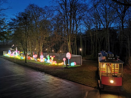 The trams at the Heaton Park Tramway are now receiving some well earnt rest after the conclusion of their use during the Lightopia event taking place in the park but as seen in this article they were still being used almost right until the end of December with the special lighting effects still around and the trams popularity showing no signs of fading. With Blackpool 623 and Manchester 765 again seeing use, Stockport 5 also came out from the depot to provide an extra vantage point of the trams in the dark. Joshua Haworth provides us with the following pictures.