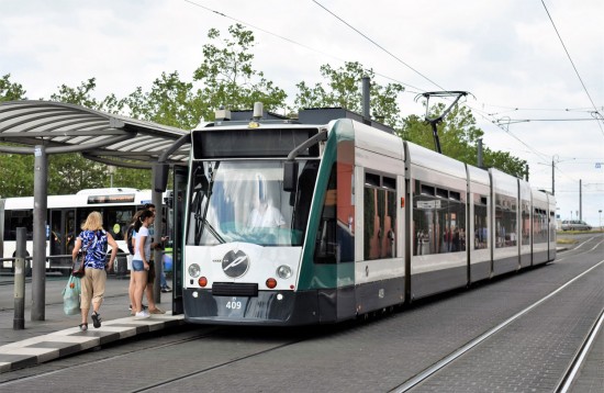 In the below photo we see no. 409 on route 96 to Marie-Juchacz-Strasse at Potsdam Hauptbahnhof. This tram is one of 17 Siemens Combino trams delivered to Potsdam, with 409 being one of eight seven section vehicles (there are also eight five section trams and a prototype four section car). The photo was taken on 28th June 2019.