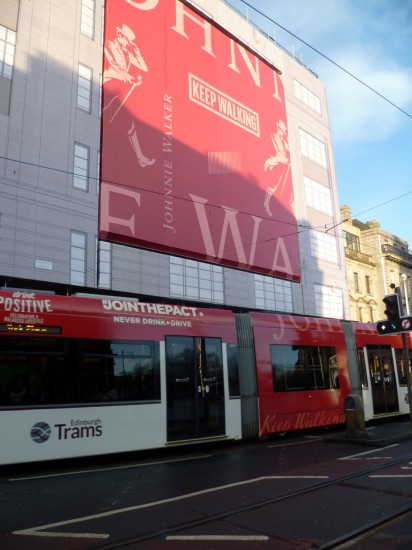 Often the Hogmanay tram in Edinburgh can carry on for quite some time into the following year but not so in 2020! 264 has already lost its special Hogmanay vinyls and is the latest tram to have “joined the pact” as it too now advertises Johnnie Walker and their Join the Pact campaign.