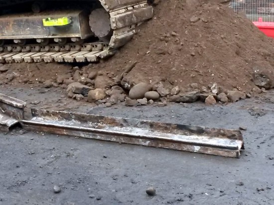 Over the years we’ve become used to old tram track being uncovered in various roadworks across the country, still in their original position having just had concrete poured over them once the tramway had been abandoned but some recent tram track discovered is a little different!