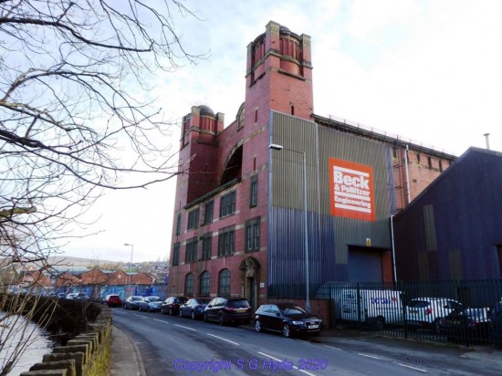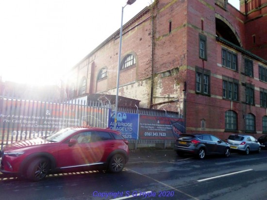 A view of the former SHMD Tramways and Electricity Board generating station on Park Road Stalybridge. The hard standing area in the foreground occupies the site of the former tram depot and works.