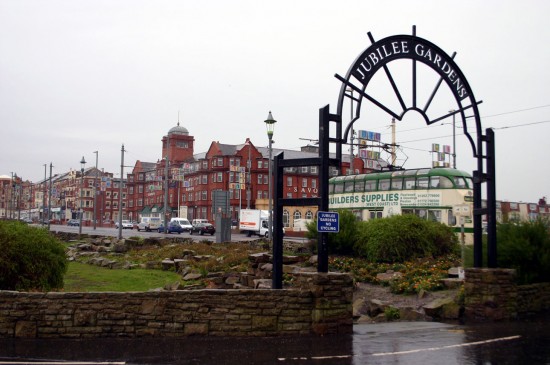 The photos in this series will come under many different categories and this one comes in the “well, I thought I’d be able to get the tram in that frame!”. On a wet day in Blackpool and there are actually very few places you can keep dry whilst still taking photos but on 5th September 2008 I thought I’d hit a good location at Gynn Square with the possibility of framing oncoming trams through the arch of Jubilee Gardens. 703 is in the 1980s Green and Cream livery complete with adverts for Builders Supplies (West Coast Ltd) and is working a service to Starr Gate in this attempted photo.