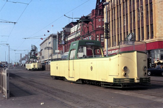 Of course, both of these remain extant today but are split by quite some distance as although 600 is one of the prides of the Blackpool heritage fleet, 605 – renumbered back to 233 – is thousands of miles away in San Francisco. 600 entered service in May 1934 with 605 following in the August of the following year, they started off numbered 225 and 233. Since this photo was taken 600 spent a period on loan at the Heaton Park Tramway whilst 605 operated at Beamish when under the ownership of the Lancastrian (now Fylde) Transport Trust before heading off for a new life in the USA.