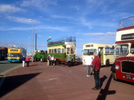 Friday 27th September 2013 is the date of this image and it is taken on Rhos-on-Sea Promenade. The tram in this shot is, of course, Llandudno & Colwyn Bay Electric Railway 7, a tram which can be seen around North Wales at various events each year. This tram didn’t actually operate in Llandudno back as Bournemouth 126 it is similar to a fleet of trams which did make the trip from the south coast to the North Wales coast, numbered 7 to 15 in the Llandudno & Colwyn Bay fleet. It was restored to the condition we see it today in time for the Centenary of opening of the tramway in 2007 and has been hauled around the area ever since, by the trusty Matador lorry which can also be seen in this photo.